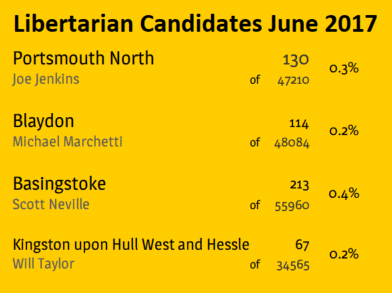 I am pleased to be the first outlet to pull together all the results for the four candidates fielded by the UK’s “Libertarian Party”. LPUK is a party with a unpleasant history, but it has kept going and achieved a new first at Thursdays election by standing 4 candidates.
